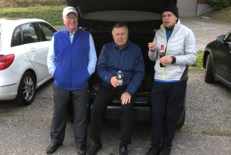 am 10.10. Freitag treffen wir uns um 13:00 Uhr um mit Anti auf dem Parkplatz zum 60er, nachträglich anzustoßen. Und ab14:00 Uhr spielen wir eine Runde Golf.