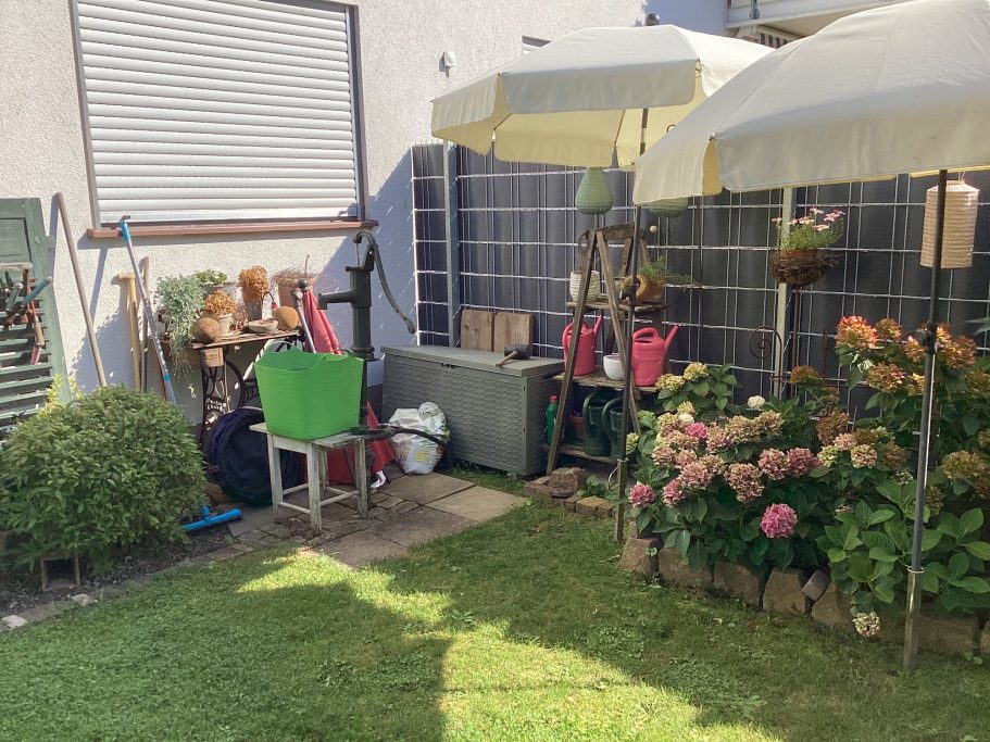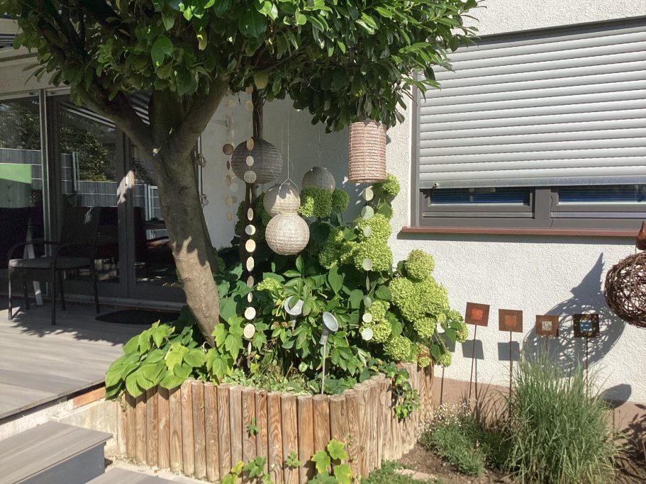 Im Sommer 2025 erblüht der Garten in voller Pracht. Die Terrasse ist einladend dekoriert und dient uns wie ein verlängertes Wohnzimmer ein perfekten Platz, um die warme Sonne zu genießen. Umgeben von bunten Blumen in allen Formen und Farben, strahlt der Garten Lebensfreude aus. Die duftenden Kräuter wie Minze, Rosmarin, Basilikum und Thymian wachsen prächtig und bieten nicht nur aromatische Würze für die Küche, sondern auch ein wunderbares Ambiente. In der Ecke des Außen-Gartens stehen zwei Apfelbäume und zwei Kirschbäume, deren Früchte in dieser Jahreszeit reif sind und eine schöne Ergänzung zur Farbenpracht der Gartenanlage darstellen. Dieser Ort ist fast ein Paradies für alle Sinne und lädt dazu ein, die Natur in ihrer schönsten Form zu erleben.