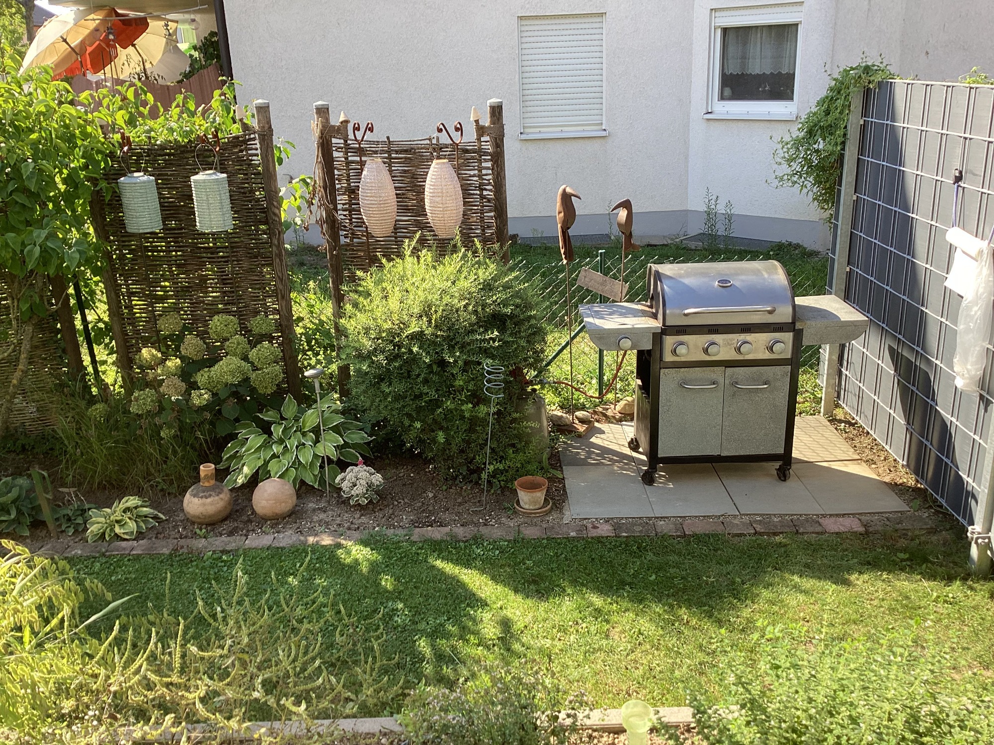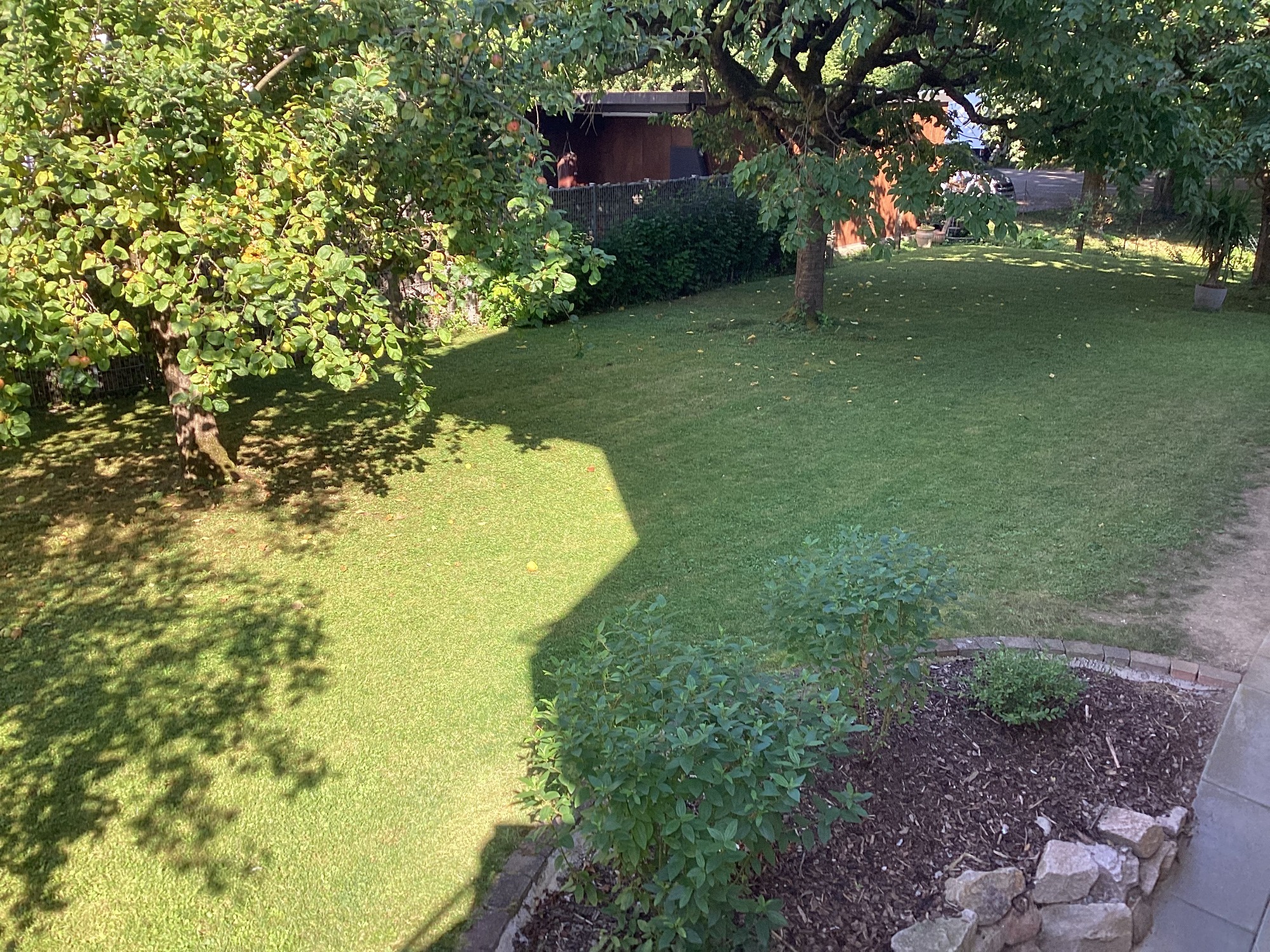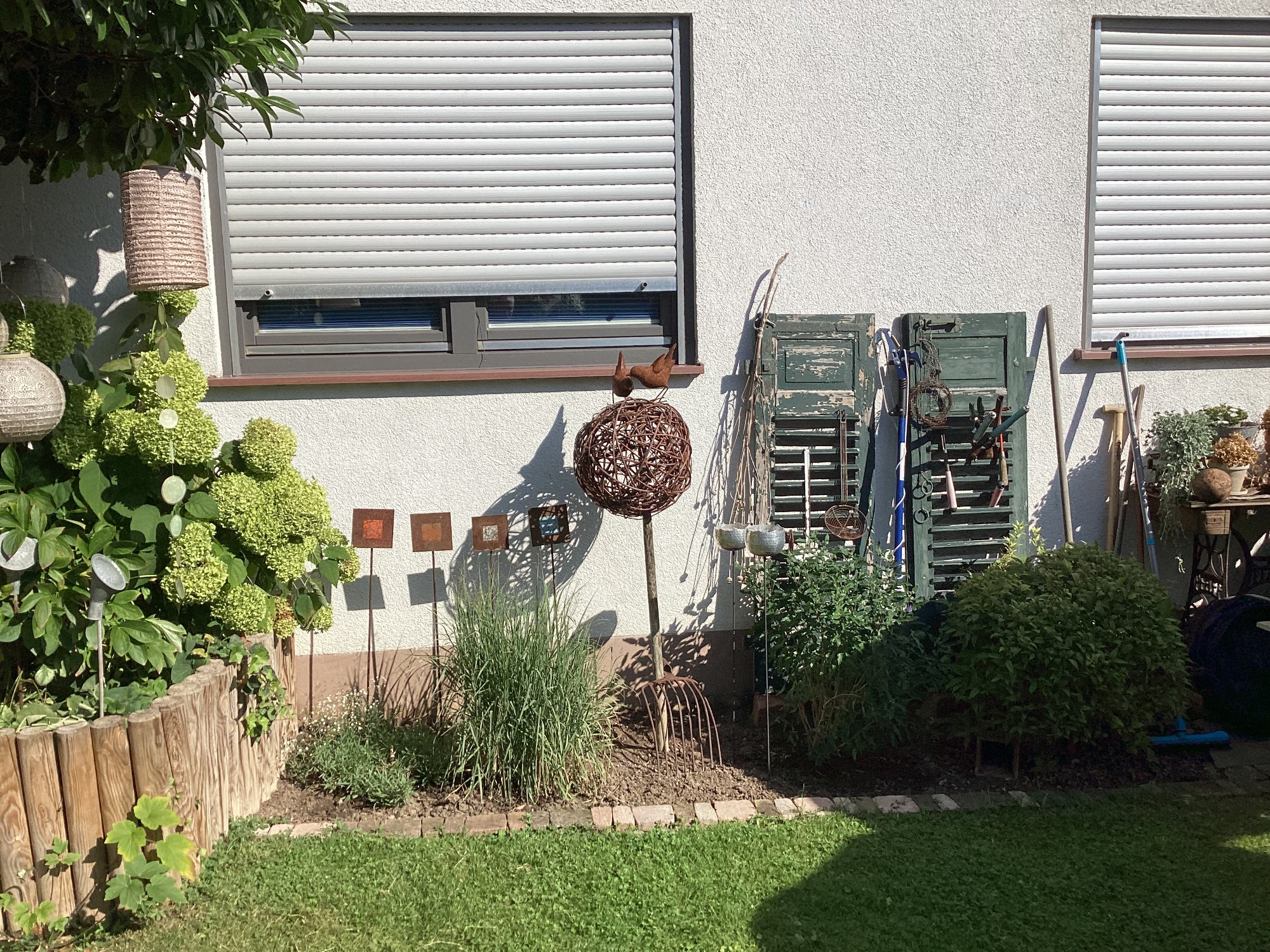 Im Sommer 2025 erblüht der Garten in voller Pracht. Die Terrasse ist einladend dekoriert und dient uns wie ein verlängertes Wohnzimmer ein perfekten Platz, um die warme Sonne zu genießen. Umgeben von bunten Blumen in allen Formen und Farben, strahlt der Garten Lebensfreude aus. Die duftenden Kräuter wie Minze, Rosmarin, Basilikum und Thymian wachsen prächtig und bieten nicht nur aromatische Würze für die Küche, sondern auch ein wunderbares Ambiente. In der Ecke des Außen-Gartens stehen zwei Apfelbäume und zwei Kirschbäume, deren Früchte in dieser Jahreszeit reif sind und eine schöne Ergänzung zur Farbenpracht der Gartenanlage darstellen. Dieser Ort ist fast ein Paradies für alle Sinne und lädt dazu ein, die Natur in ihrer schönsten Form zu erleben.