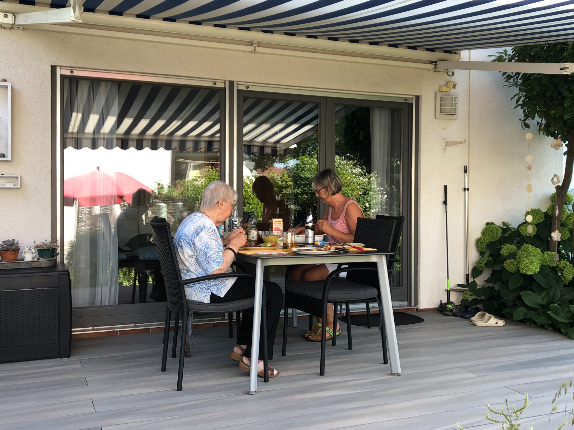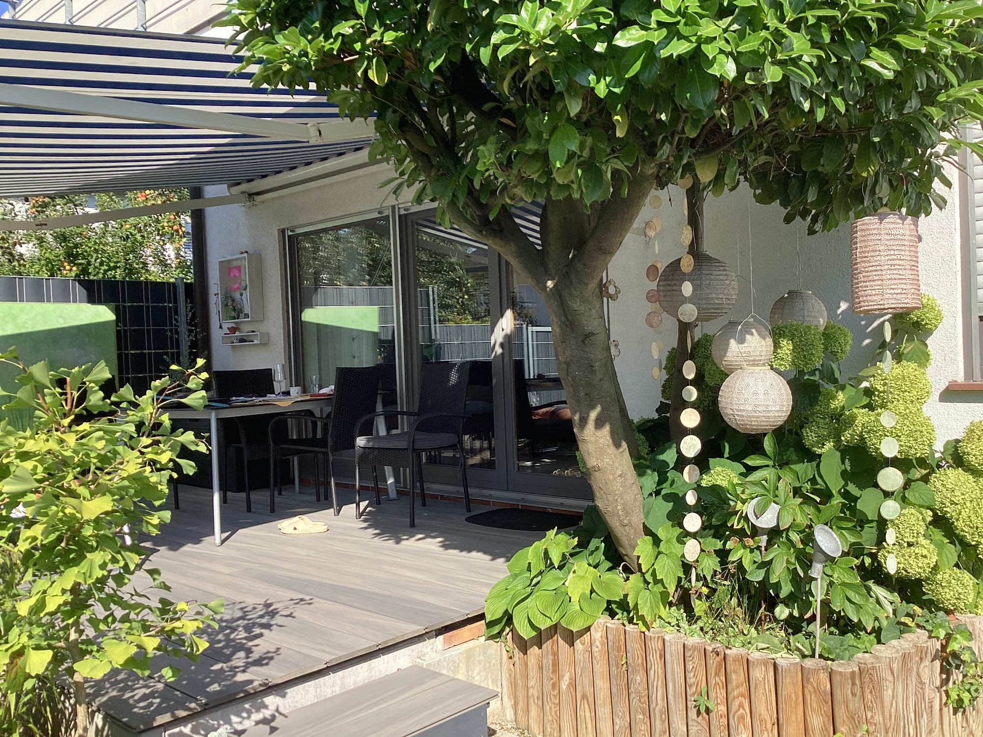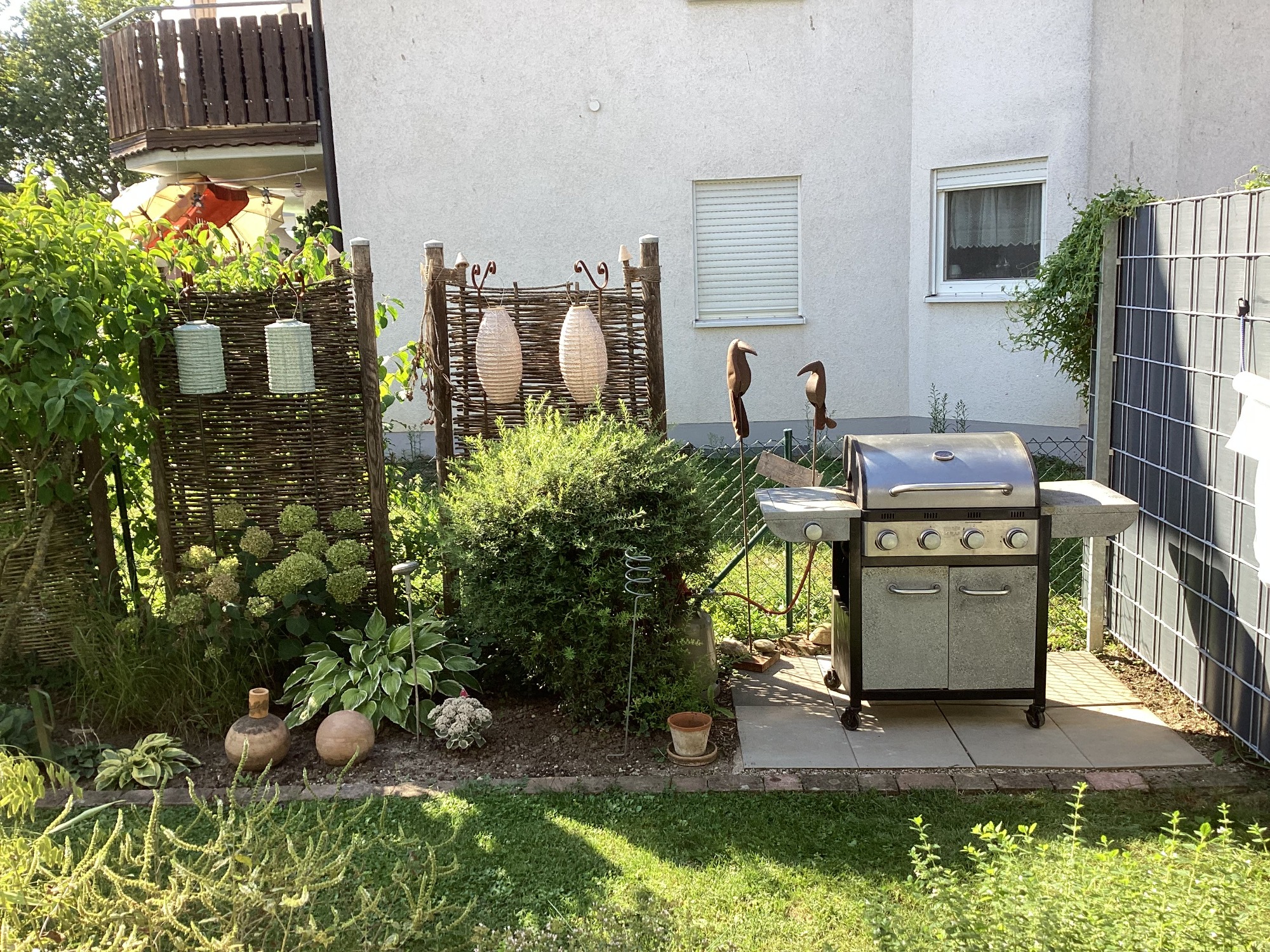 Im Sommer 2025 erblüht der Garten in voller Pracht. Die Terrasse ist einladend dekoriert und dient uns wie ein verlängertes Wohnzimmer ein perfekten Platz, um die warme Sonne zu genießen. Umgeben von bunten Blumen in allen Formen und Farben, strahlt der Garten Lebensfreude aus. Die duftenden Kräuter wie Minze, Rosmarin, Basilikum und Thymian wachsen prächtig und bieten nicht nur aromatische Würze für die Küche, sondern auch ein wunderbares Ambiente. In der Ecke des Außen-Gartens stehen zwei Apfelbäume und zwei Kirschbäume, deren Früchte in dieser Jahreszeit reif sind und eine schöne Ergänzung zur Farbenpracht der Gartenanlage darstellen. Dieser Ort ist fast ein Paradies für alle Sinne und lädt dazu ein, die Natur in ihrer schönsten Form zu erleben.